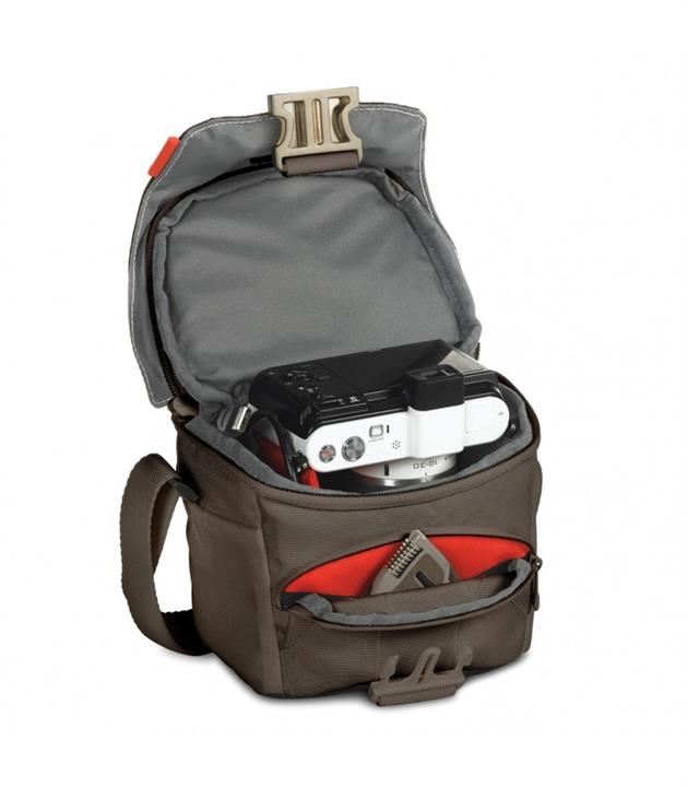 این کیف شانهآویز کوچک و کمجا بوده و دارای گنجایش یک دوربین بدون آینه با لنز متصل به آن است. همچنین برای کابل، درپوش لنز و برخی وسایل شخصی نیز فضاهایی تعبیهشده است. طراحی مبتکرانه این کیف جایدادن دوربین در داخل کیف و خارجکردن سریع آن را