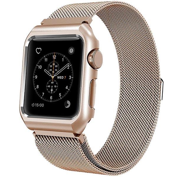 Mobest 38mm Milanese Stainless Steel Wrist Band with Metal Protective Case - Gold