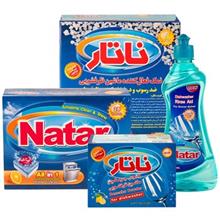 به همراه: -نمک ماشینظرفشویی ناتار اکتیو شده در بستهبندی2 کیلوگرمی - مایع درخشانکننده ظروف مخصوص ماشینظرفشویی ناتار در بستهبندی 500 میلی لیتر - پودر جرمگیر ماشینظرفشویی ناتار با رایحه لیمو بسته ی250 گرمی (شامل5 ساشه50گرمی)
