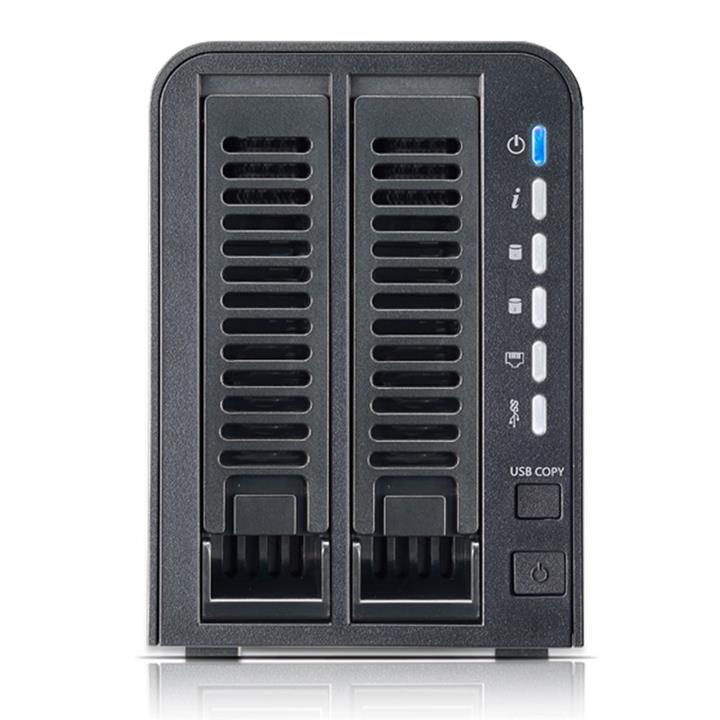 RAID support (0, 1, and JBOD) Web-based file access Built-in FTP server BitTorrent client Plex Media support Mobile control and media streaming via T-OnTheGo™ (for Android and iOS) Easy Connection Through DDNS 5 minute complete installation Self-RAID creation Energy Efficient: 5W without HDD(about 14W with 2 HDD loaded)