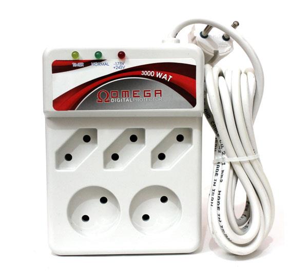 محافظ برق سه خانه امگا ، سیم 3 متری یخچال و صوتی تصویری