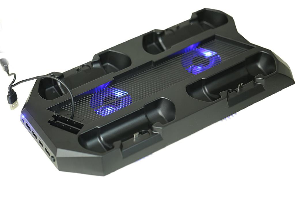 شارژ دسته بازی و نگه داشتن و خنک کردن کنسول - مجهز به دو قسمت مجزا برای دستهها - مجهز به سه پورت USB - مجهز به 2 فن خنک کننده - اتصال به کنسول از طریق کابل USB