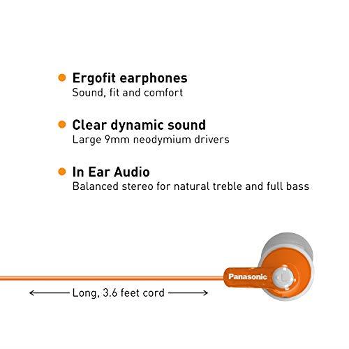 هندزفری هدست هدفون Panasonic ErgoFit In-Ear Earbud Headphones RP-HJE120-D (Orange) Dynamic Crystal Clear Sound, Ergonomic Comfort-Fit