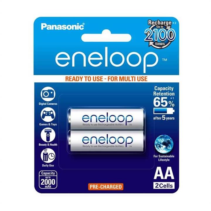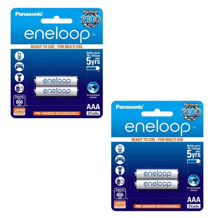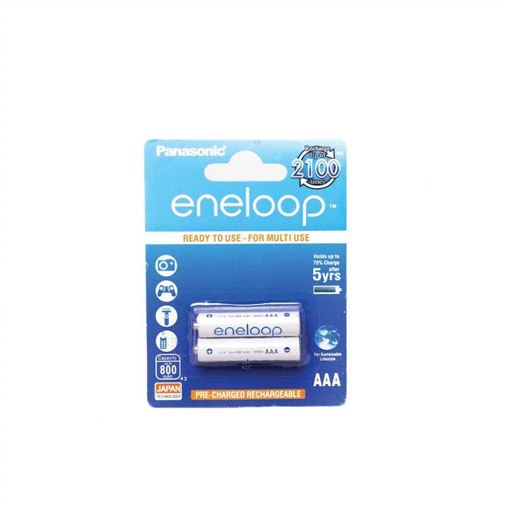 بسته دو عددی\r\nشارژ تا 2100 بار\r\nتا 70 درصد از شارژ خود را پس از 10 سال حفظ می کند (در صورت عدم استفاده)\r\nدارای نوع ظرفیت 750 تا 800 میلی آمپر ساعت\r\nپیش شارژ در کارخانه با استفاده از انرژی خورشیدی و آماده استفاده می باشد\r\nبدون اثر حافظه - باتری ها را می توان در صورت کامل یا قسمتی از شارژ مجدد شارژ کرد.\r\nساخت کشور ژاپن
