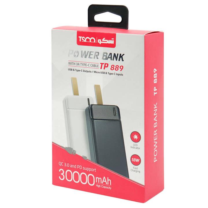 پاوربانک تسکو مدل TP 889، ظرفیت 30000 میلی آمپر رنگ سفيد