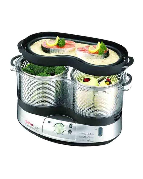 سبد بخار گنجایش زیاد ویتامین+: ویتامینهاى مواد غذایى را حفظ مىکند صفحه پخت نچسب دورو (براى مواد غذایى خوابانده شده در سس / ادویه) قابلیت پخت همزمان 3 نوع غذا داراى دو ظرف فلزى که لک نمىشوند، بو نمىگیرند و به آسانى تمیز مىشوند ظرفهای کاملا مجزا که با
