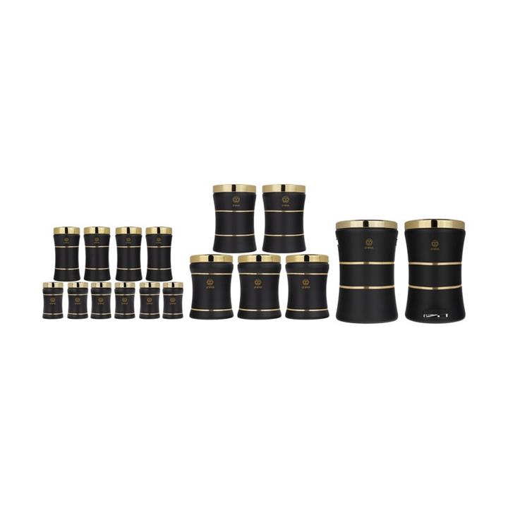 یک عدد ظرف برنج با ابعاد: 24 × 24 × 38 سانتیمتر و وزن: 1700 گرم\r\nدارای پیمانه پلاستیکی \r\nدارای سطل پلاستیکی داخلی \r\n\r\nیک عدد سطل زباله با ابعاد: 38.5 × 24 × 35 سانتیمتر و وزن: 2000 گرم\r\nدارای سطل پلاستیکی داخلی \r\nظرفیت: 12 لیتر \r\n\r\n4 عدد بانکه سایز 1 با ابعاد: 22 × 11 × 11 سانتیمتر و وزن: 355 گرم\r\nمناسب برای نگهداری حبوبات\r\n\r\n2 عدد بانکه سایز 2 با ابعاد: 16 × 11 × 11 سانتیمتر و وزن: 285 گرم\r\nمناسب برای نگهداری چای، قند و...\r\n\r\n6 عدد جای ادویه با ابعاد: 12.5 × 7 × 7 سانتیمتر و وزن: 135 گرم\r\nدارای قاشق پلاستیکی\r\n\r\n2عدد ظرف شکر با ابعاد: 17 × 25.5 × 25.5 سانتیمتر و وزن: 730 گرم\r\nظرفیت: 3 کیلوگرم \r\n